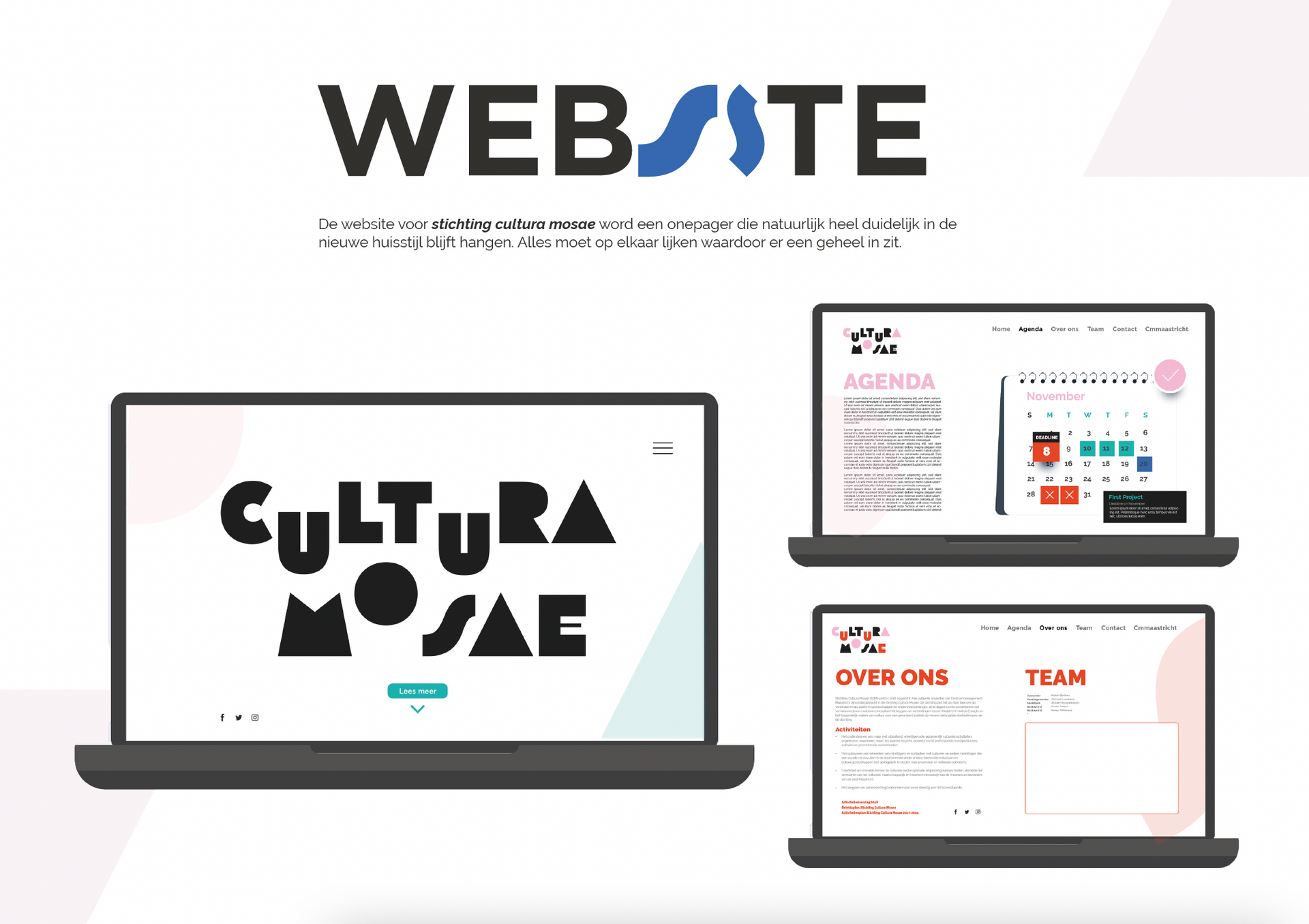 Een paar jaar geleden heb ik dan ook de gelegenheid gehad om niet alleen dee huisstijl maar ook de website te mogen maken. Deze is dan ook omdat heet een paar jaar geleden is aangepast. https://culturamosae.nl/